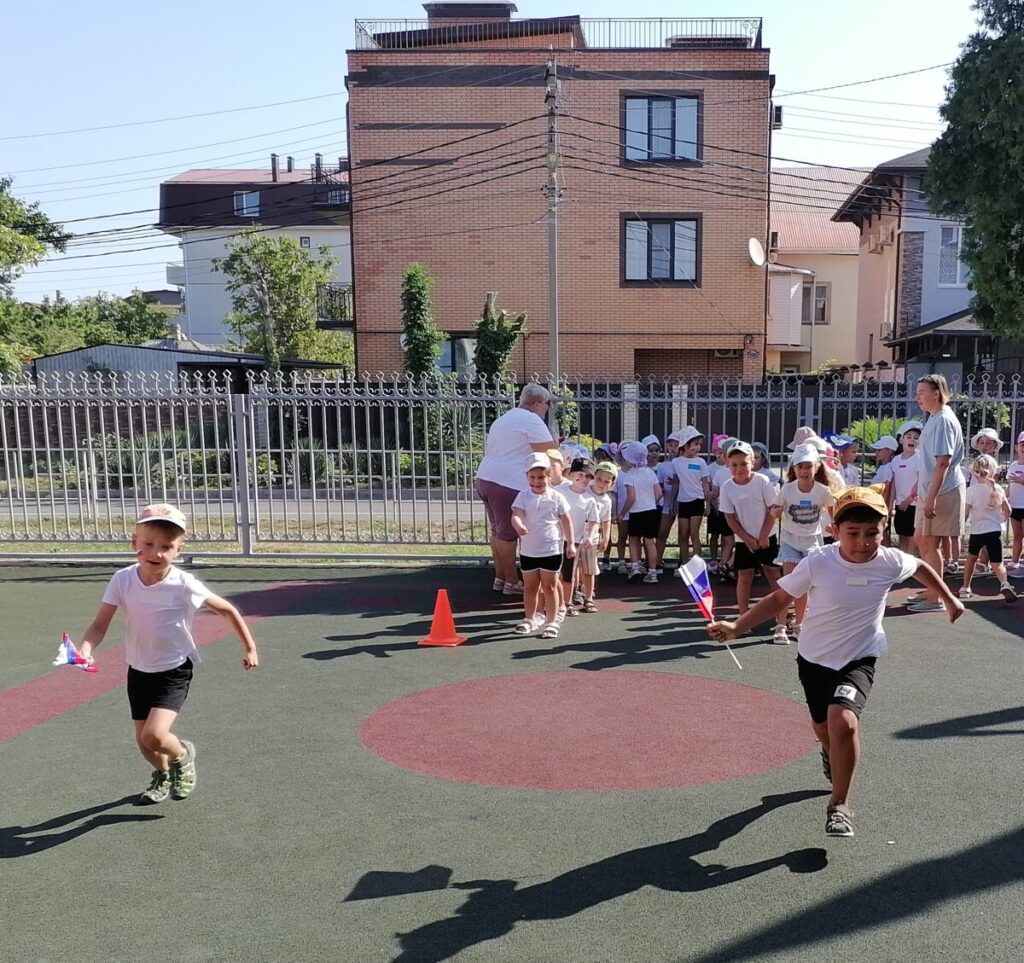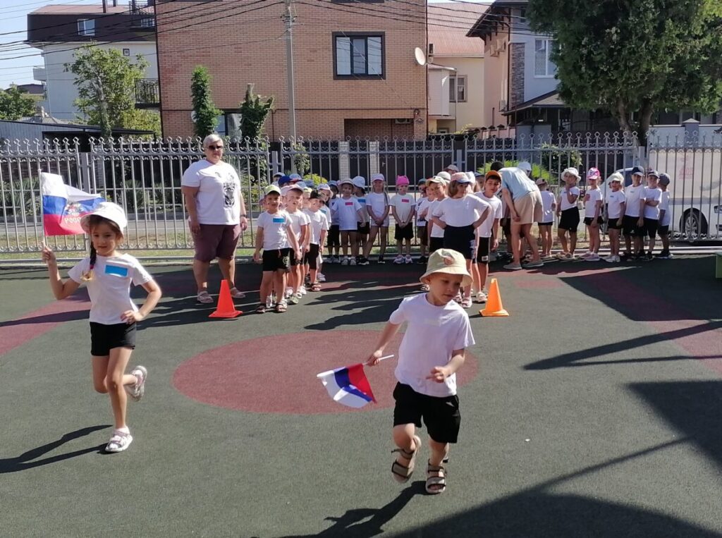 Для ребят и родителей прошла развлекательно – игровая программа «Я живу в России!». Вместе с педагогами дети водили хоровод, отгадывали загадки о нашей великой стране, пели гимн Российской Федерации. Дети смогли показать какие они смелые, ловкие и быстрые, участвуя в эстафетах.
